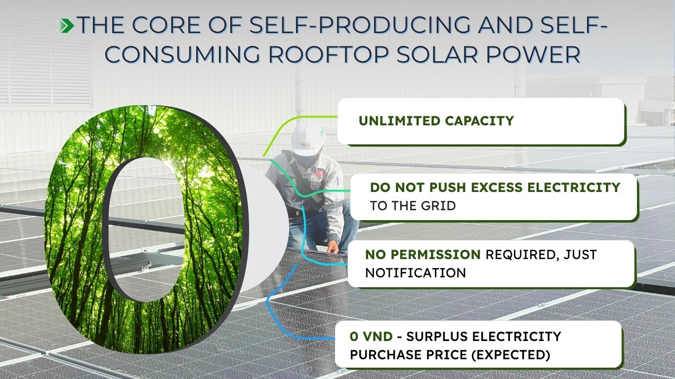 The policy orientation from PDP VIII and draft decrees issued by the Ministry of Industry and Trade (MOIT) have defined three fundamental principles for self-consumption rooftop solar systems: No capacity limit, Utilization of existing grid infrastructure, Risks related to surplus power sales.