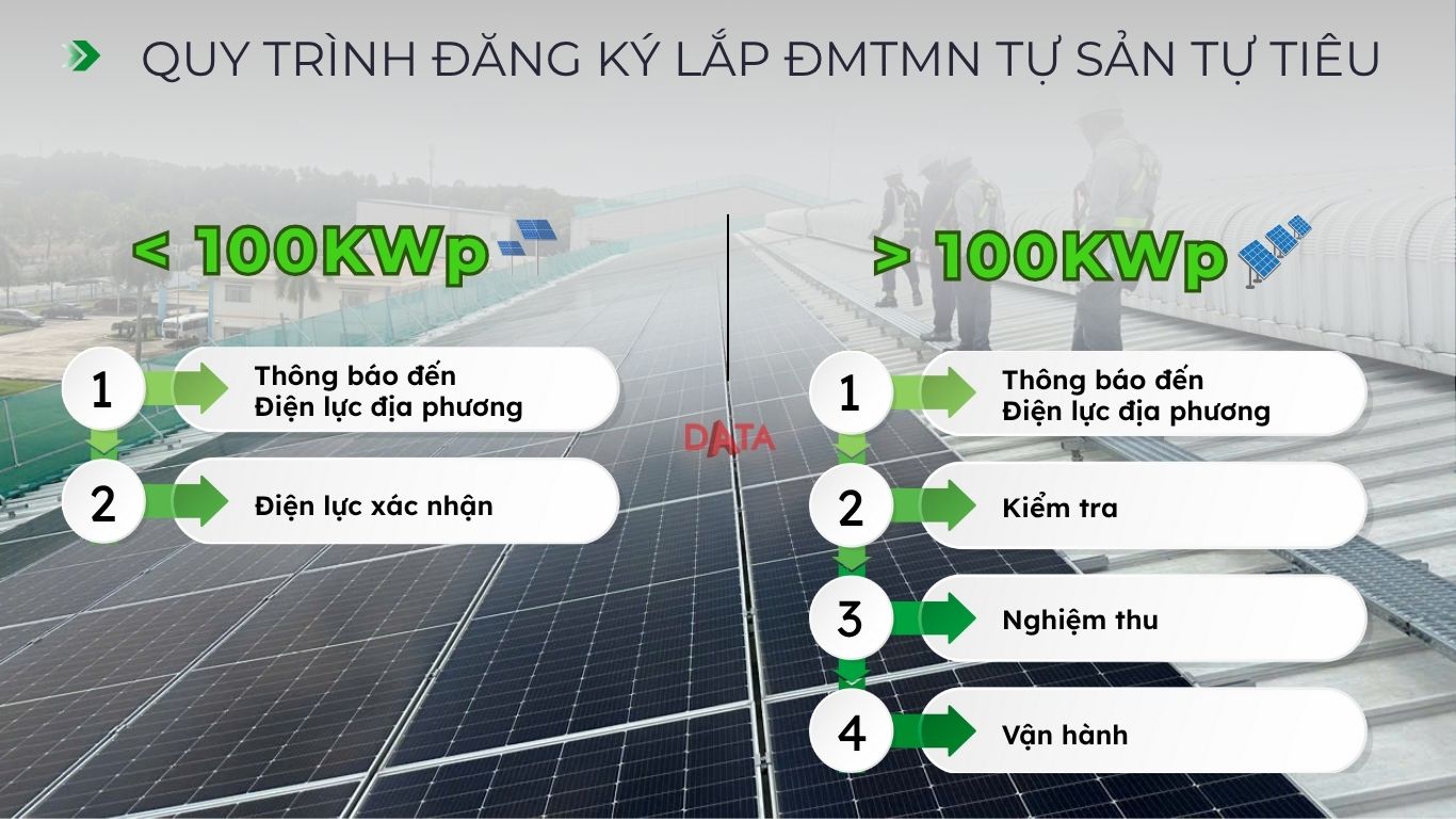 Việc lắp đặt và vận hành phải tuân thủ nghiêm ngặt quy trình đăng ký, nghiệm thu kỹ thuật với Đơn vị Điện lực tại địa phương để đảm bảo an toàn và tính hợp pháp (theo hướng dẫn của Tập đoàn Điện lực Việt Nam – EVN).